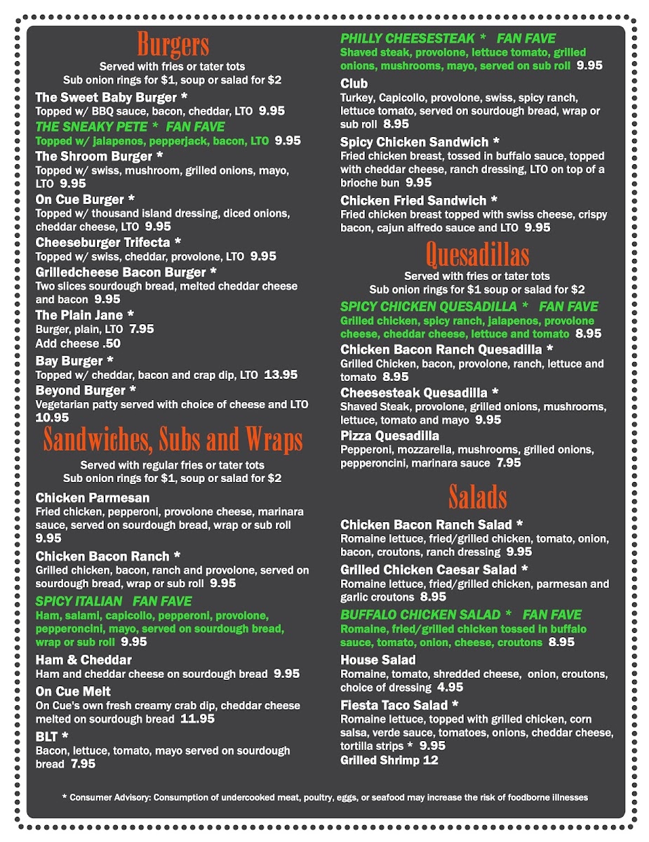 In summary, On Cue Sports Bar & Grill stands out not just for its tasty dishes and innovative drinks, but for a fun-filled ambiance that delights all who step through its doors. Don’t miss out on this hotspot in Front Royal—the perfect place to indulge your culinary passion or simply enjoy a good time with friends.